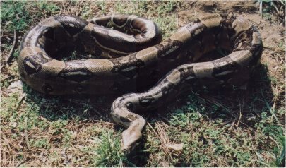 We got the snake first (Spring 1997). She is a 10 foot long Columbian Red Tail Boa Constrictor and her name is Medusa (appropriate name for a snake, don't you think?). She is very low maintenance and only needs to be fed about once a week in the summer and she doesn't eat at all from about Thanksgiving thru the first of April (she goes into a state of "pseudo-hybernation" in the winter). She used to eat live rats but as she got bigger, I had a harder time finding rats that would satisfy her. No I don't go looking in the sewers or something for them, I buy them at the pet store!! When I switched her over to frozen rats I was able to get some really big ones. I'd just thaw them out and toss 'em in the cage. I wouldn't have thought she'd eat a dead rat but I teased her with the first one (dragging it arround her cage by the tail so she'd think it was alive) and it worked. In case you're wondering, she swallows them whole.